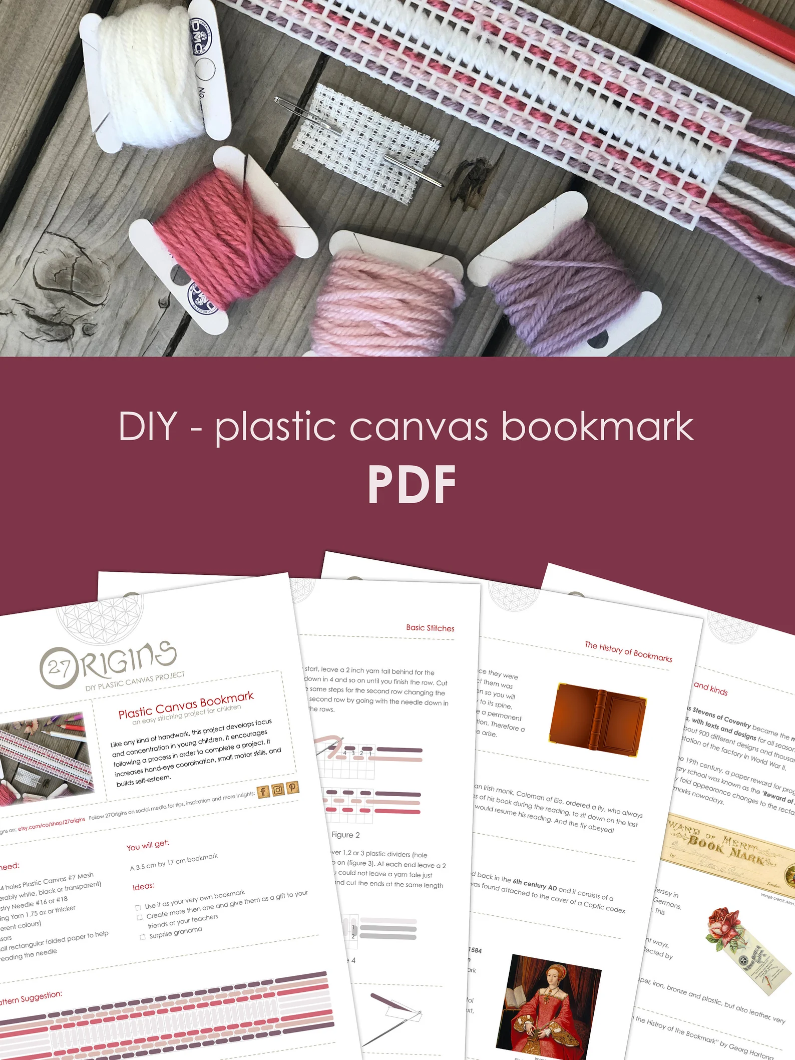 DIY Plastic Canvas Bookmark for Children – easy needlecraft – PDF