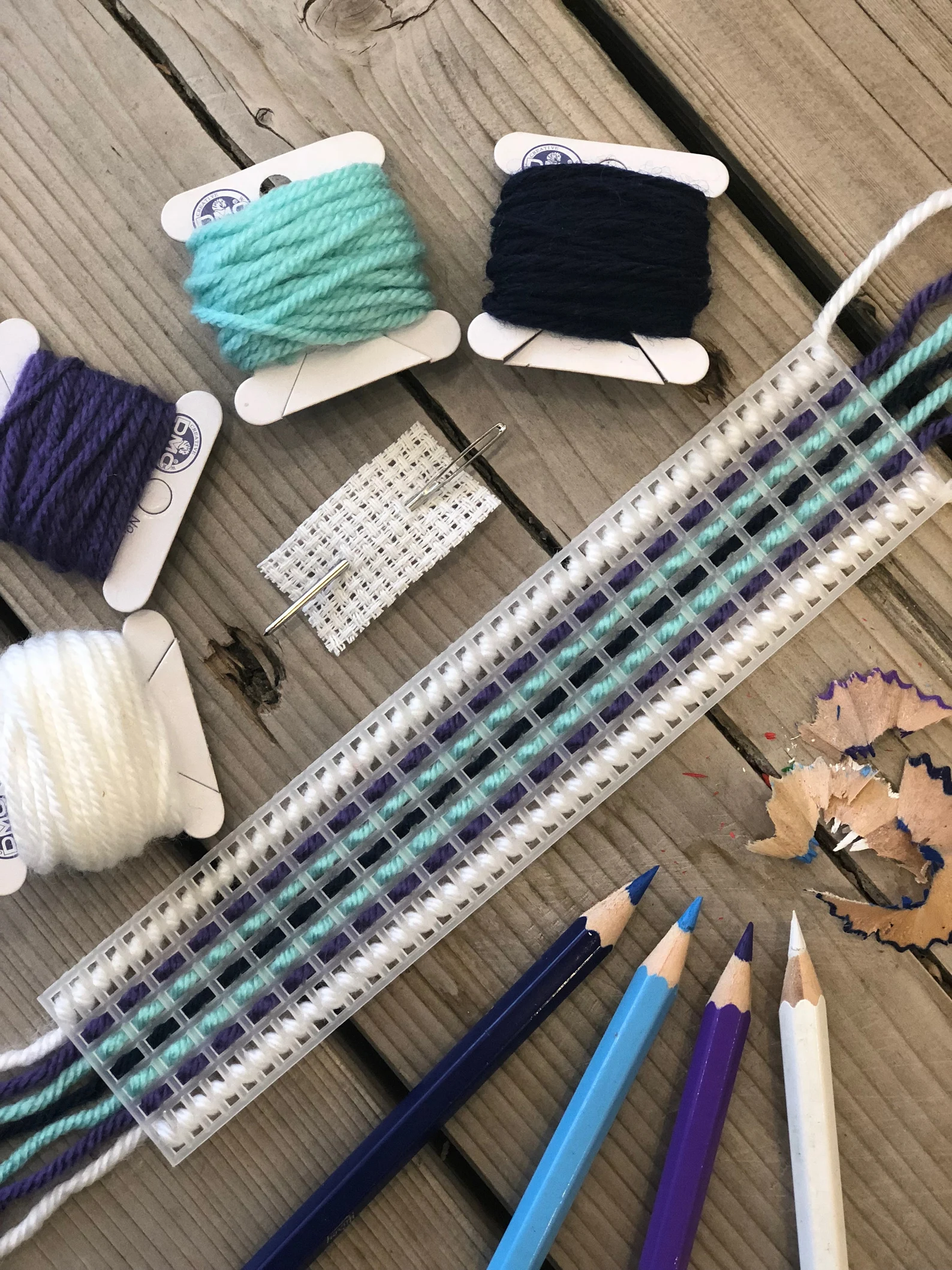 While working with different age groups in my embroidery classes for children I noticed that the Plastic Canvas Bookmark project is by far their favourite one.